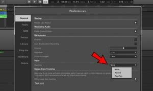 Open the preferences (Maschine –> preferences) and have a look under the “General” tab. At the INPUT secion you will see “quantize”. In the selection box next to it you can adjust the way the software reacts to your input. “None” does nothing to the played notes: so no quantization. “Record” corrects the timing of all the notes you play, making them stay on the grid. “Record/Play” however, goes a bit further. Not only does it quantize the notes that are recorded, it already corrects the timing while you are playing! Ideal for users that feel insecure about their live playing skills.